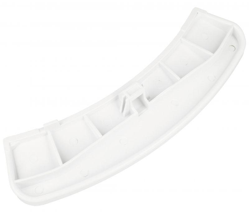 Manecilla de escotilla alternativa compatible con lavadoras y secadoras Beko. Pieza de diseño curvo y alargado, fabricada en plástico blanco liso.