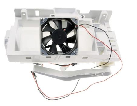 Módulo de máquina de hacer hielo Beko para instalación interna en frigoríficos y congeladores. Fabricado en plástico blanco con componentes metálicos visibles y conexiones eléctricas integradas, se encarga de producir y liberar cubitos de hielo de forma automática dentro del aparato. Diseñado como recambio específico para sistemas de fabricación de hielo.