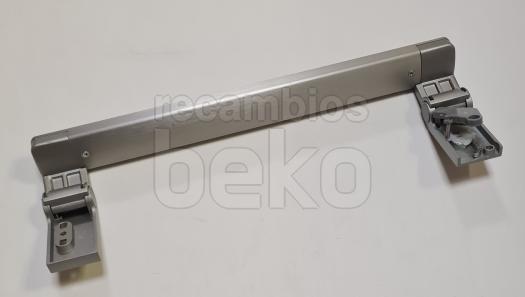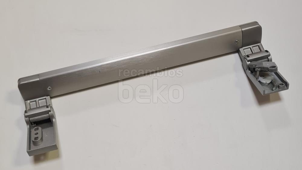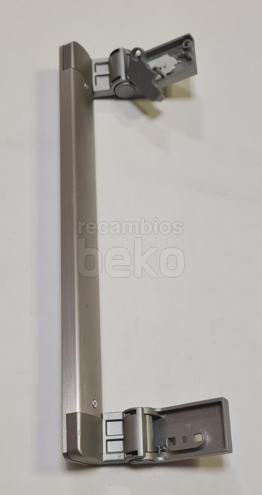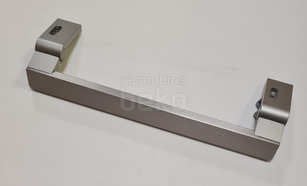 Tirador de puerta para frigorífico Beko, de diseño alargado y completamente recto, específico para aparatos de refrigeración de la marca. Está fabricado en plástico rígido de color inox uniforme y presenta bordes ligeramente redondeados para un agarre cómodo y seguro. Es adecuado para sustituir el tirador original de la puerta del frigorífico o congelador Beko cuando está roto o desgastado, manteniendo la estética original del aparato.