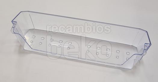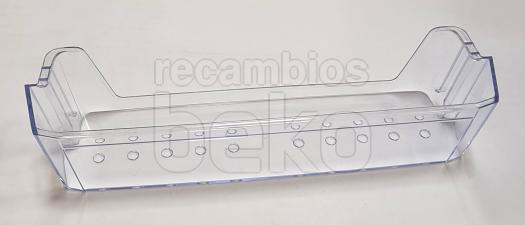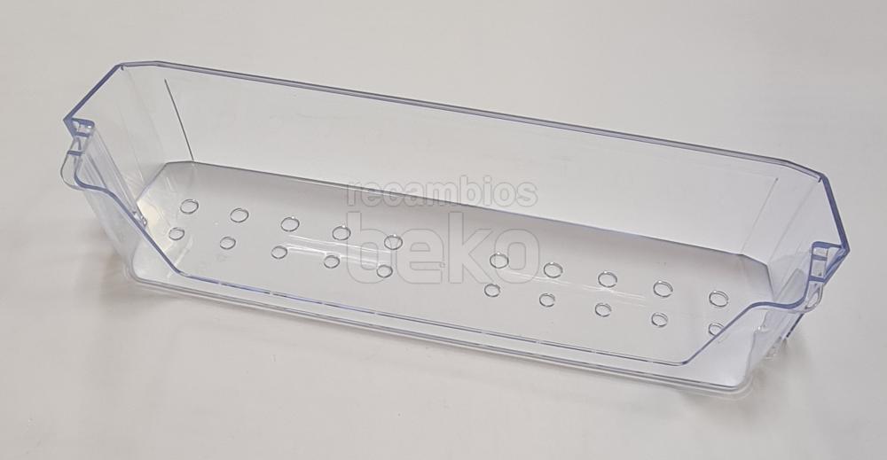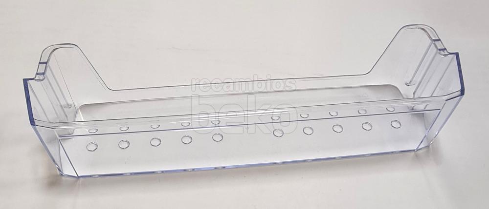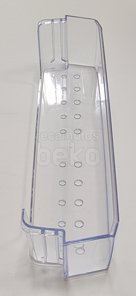 Botellero de puerta original Beko diseñado para alojar y sujetar botellas en la contrapuerta de frigoríficos y congeladores compatibles. Se instala en los anclajes existentes de la puerta y permite organizar bebidas y recipientes alargados, optimizando el espacio interior del aparato. Pieza de recambio específica para la zona de puerta, con forma de bandeja alargada y frontal elevado para evitar el deslizamiento de las botellas.