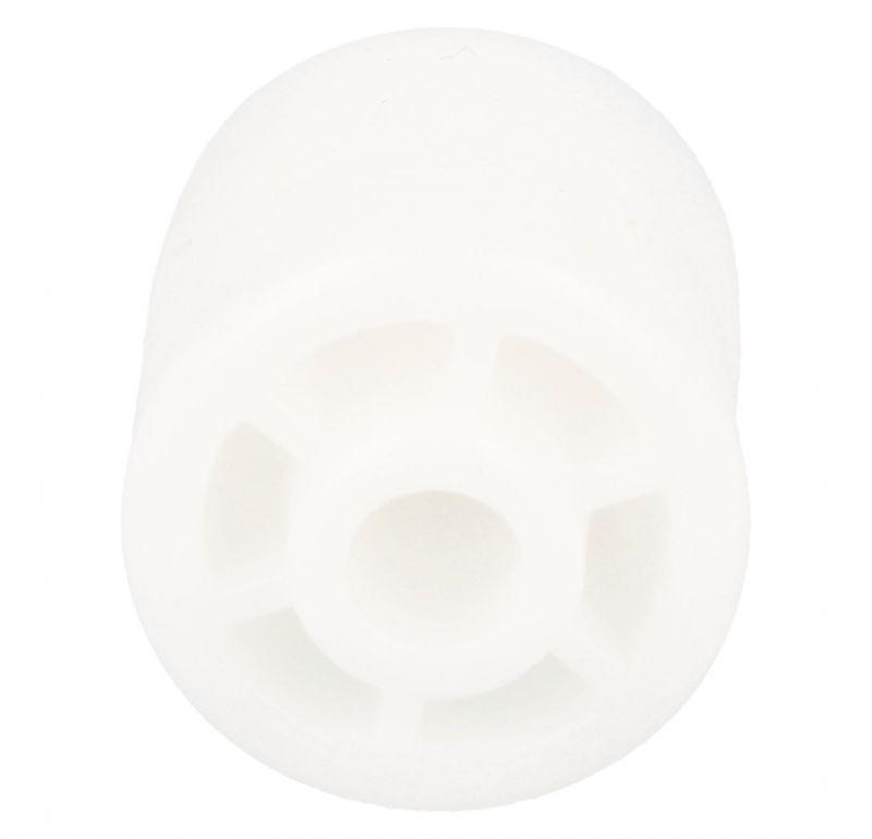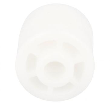 Rueda o rodillo de recambio para frigoríficos y congeladores Beko. Pieza de forma circular con eje central integrado y superficie exterior lisa, diseñada para facilitar el desplazamiento o el deslizamiento. Fabricada en plástico blanco de una sola pieza.
