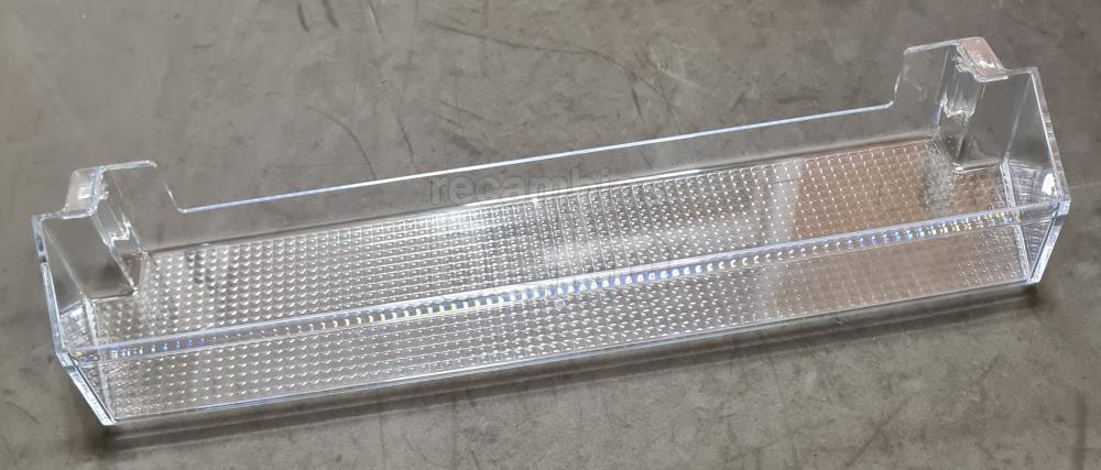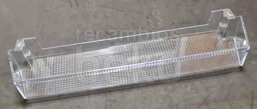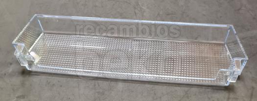 Estante de puerta original para frigoríficos y congeladores Beko de 55 mm aproximadamente, apto para posición superior e intermedia en la contrapuerta. Sustituye al estante de puerta deteriorado o roto, manteniendo la capacidad y organización interior del aparato.