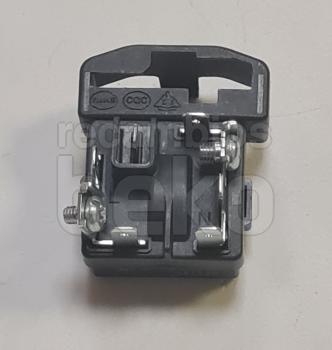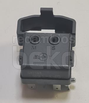 Relé PTC de arranque para compresores de frigoríficos y congeladores de la marca Beko, modelo JIAXPERA. Es una pieza pequeña de plástico blanco, rectangular y compacta, con varias ranuras y relieves en la superficie para el alojamiento de conexiones eléctricas. Diseñado para facilitar el arranque del compresor, se monta directamente sobre la entrada del compresor según el modelo compatible.