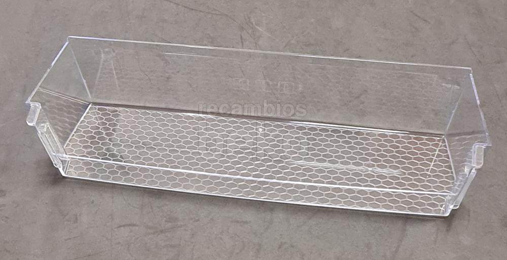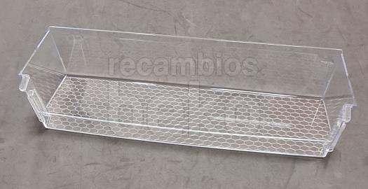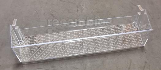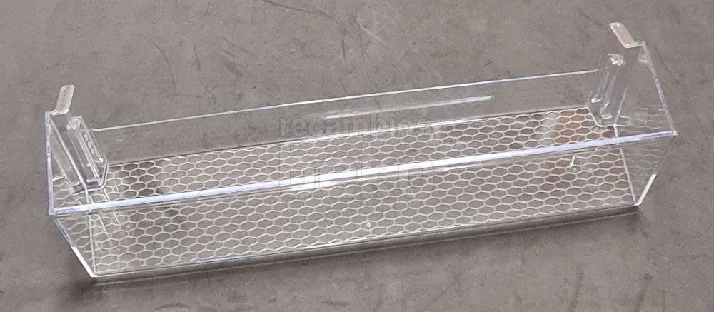 Botellero de puerta original para frigoríficos Beko, diseñado como estante inferior para botellas. Medida aproximada de longitud 54 cm y altura frontal de 90 mm, adecuado para alojar botellas y envases altos en la puerta del aparato.
