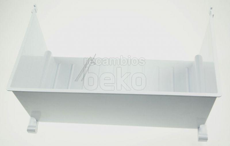 Cuerpo de cajón verdulero original para frigoríficos Beko. Pieza de forma rectangular, fabricada en plástico transparente, con paredes lisas y frontal ligeramente curvado que facilita la extracción. El borde superior está reforzado para aportar mayor estabilidad al cajón y un mejor apoyo en las guías del frigorífico. Diseñado para el almacenamiento de frutas y verduras en la parte inferior del frigorífico, sustituye al cajón original dañado o desgastado.