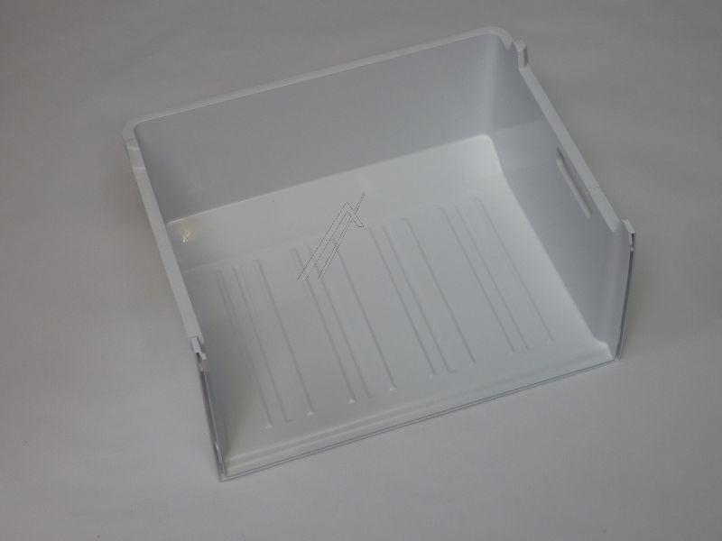 Cuerpo de cajón congelador original para frigoríficos y congeladores Beko. Se trata de un cuerpo de cajón de plástico blanco, de forma rectangular y con el frontal liso y uniforme, todo en el mismo tono translúcido. Diseñado para alojarse en el compartimento de congelación y facilitar la organización y visualización de los alimentos congelados. Pieza específica para modelos de la marca Beko que utilicen este tipo de cajón congelador.
