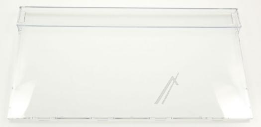 Frontal de cajón de congelador original para congeladores Beko. Pieza de recambio en forma de tapa delantera rectangular, con superficie lisa y asa integrada en la parte superior para facilitar la apertura y el cierre del cajón. El frontal es de plástico transparente y translúcido uniforme, permitiendo ver el contenido del cajón sin necesidad de abrirlo. Diseñado como cubrecajón para el compartimento del congelador, se monta en la parte frontal del cajón correspondiente.