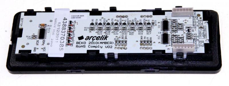 Módulo de display táctil de control para frigoríficos y congeladores Beko. Pieza frontal rectangular y alargada, con superficie lisa y brillante que integra la pantalla táctil de manejo del aparato. Se instala en la zona de control del frigorífico o congelador y permite gestionar las funciones mediante una interfaz táctil.
