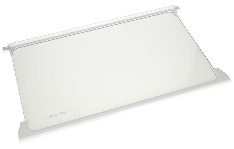 Estante de vidrio completo original para frigoríficos y congeladores Beko. Se trata de una balda de cristal rectangular y transparente con placa frontal y un perfil de color blanco en la parte posterior y anterior. Sus medidas aproximadas son 495 x 295 x 10 mm, diseñada para ofrecer una superficie estable y continua para la colocación de alimentos en el interior del aparato.