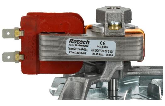 Motor de ventilador para horno compatible como recambio para modelos Beko con referencia 264440102. Es un motor específico para la función de ventilación/convección del horno y se instala en la parte trasera del aparato, sustituyendo al motor original averiado.