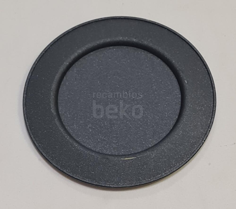 Tapa de quemador compatible con cocinas Beko. Corresponde al cabezal quemador de 3 kW y tiene un diámetro de 98 mm. Presenta formato redondo, acabado liso y un pequeño saliente central. Indicada para la categoría de quemadores.