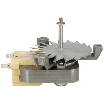 Motor de ventilador para horno Beko de 240V y 35W, diseñado para garantizar la circulación de aire caliente en el interior del horno. Pieza metálica de color gris, con carcasa circular, aspas radiales y eje central, montada sobre una base con conexiones eléctricas visibles. Adecuado para hornos de la marca Beko que requieran recambio de motor de ventilador.