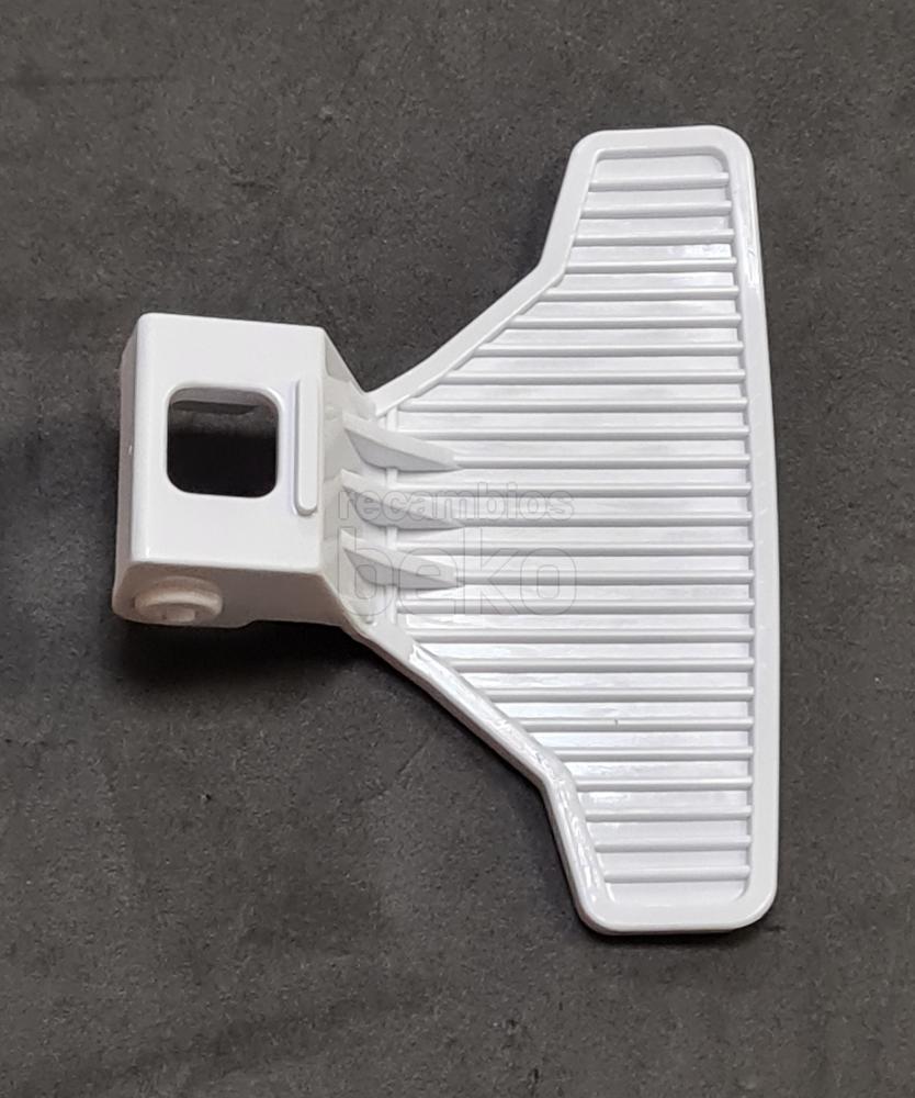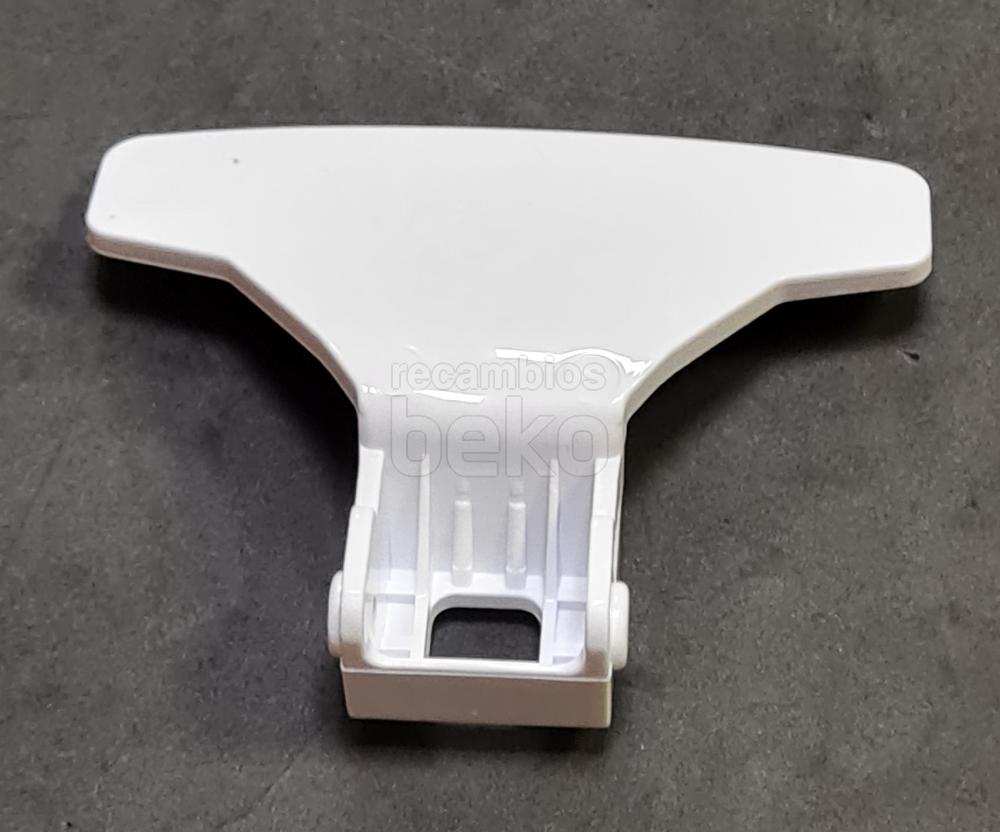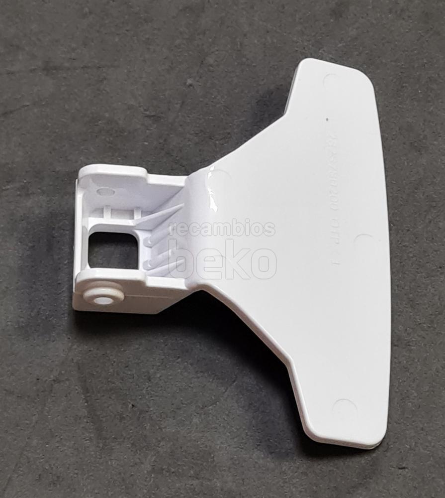 Mango alternativo para la puerta de la lavadora BEKO 2828780100. Se trata de un tirador de puerta para lavadoras de color blanco, fabricado en plástico rígido, con forma curvada y alargada. Presenta una superficie lisa y uniforme, todo del mismo color, diseñado para accionar la apertura y cierre de la puerta del aparato. Es una pieza específica para la zona exterior de la puerta de la lavadora, destinada a sustituir el mango original dañado o desgastado.