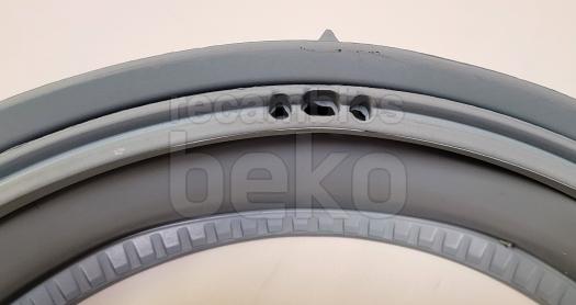 Goma de escotilla de reemplazo para lavadoras. Diseñada para asegurar el cierre hermético de la puerta y evitar fugas de agua durante el lavado o el secado. Pieza específica para la zona de la escotilla, con forma adaptada al marco de la puerta del electrodoméstico. Adecuada como recambio directo de la goma original deteriorada o desgastada.
