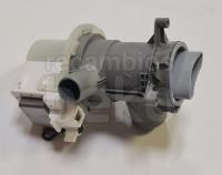 Bomba de desagüe alternativa compatible con lavadoras y secadoras BEKO, referencias 2840940600 y 2840941500. Funciona a tensión AC 230V con una potencia de 30W. Dispone de tapa de filtro incorporada y conexiones eléctricas en la parte delantera. Cuenta con entrada de agua de 34 mm y dos salidas de agua de 22 mm y 10 mm, diseñada para la evacuación eficiente del agua de lavado.