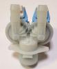 Electroválvula de entrada de agua de 2 vías compatible con lavadoras y secadoras Beko. Pieza de repuesto con cuerpo principal rectangular de plástico blanco, dos salidas cilíndricas superiores para la distribución del agua y conexión eléctrica en la parte inferior para su accionamiento. Diseñada para controlar el flujo de agua hacia el aparato en sistemas de lavado.