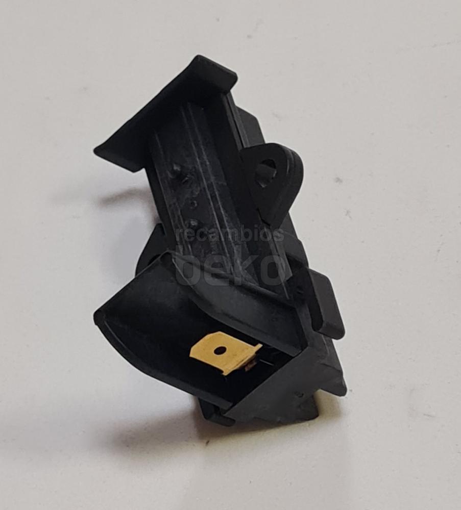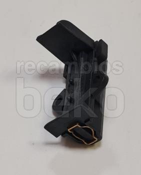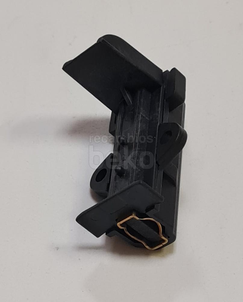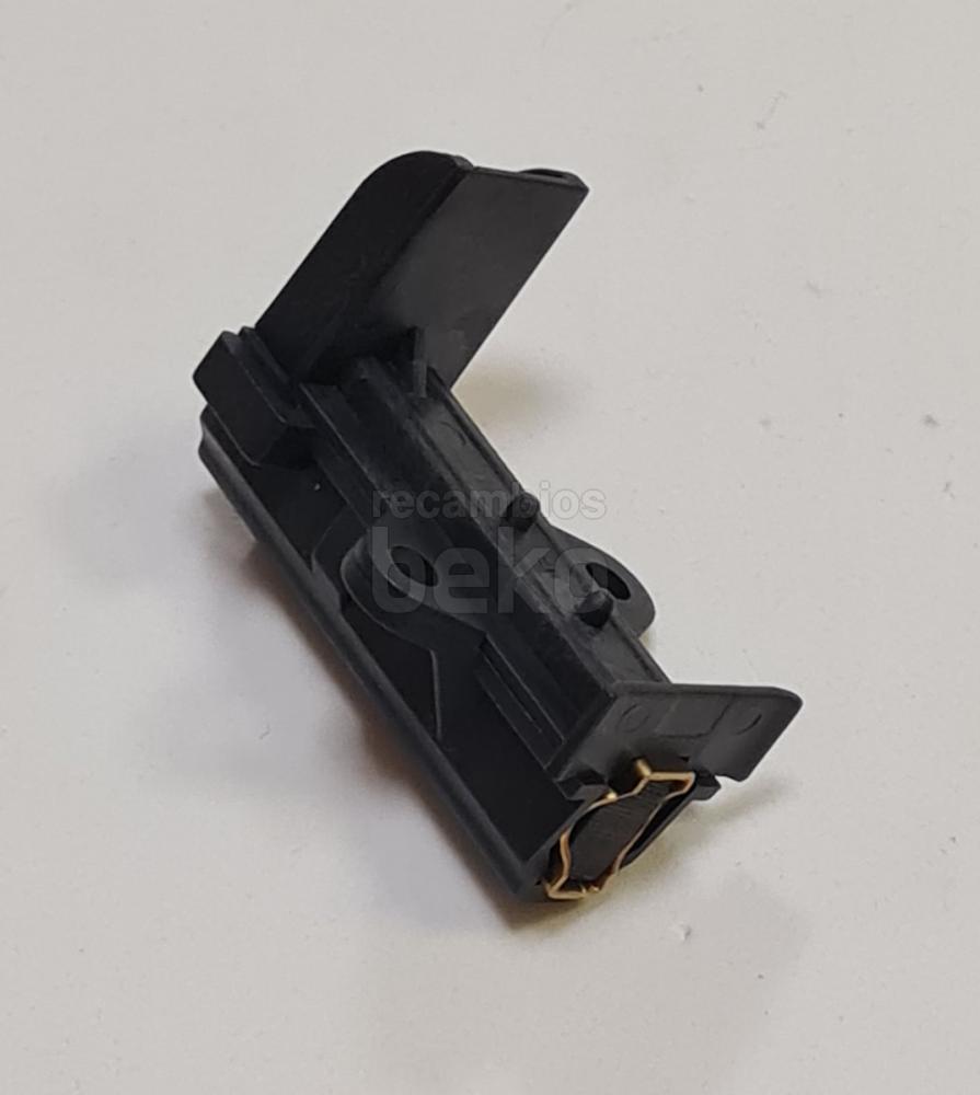 Escobilla de carbón para motor original para lavadoras y secadoras Beko, referencia 371201202. Medidas de la pastilla de carbón: fuerza 5 mm, ancho 12,5 mm y longitud 25 mm. Incluye soporte con longitud de apoyo de 50 mm y conector plano tipo 6,3 mm AMP. Se suministra una unidad (X1), específica para motores con escobillas de carbón en aparatos de la marca Beko.