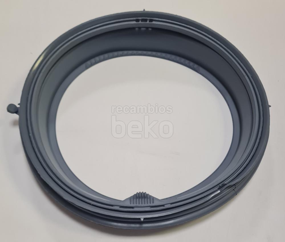 Goma de puerta para lavadora Beko diseñada como junta de escotilla, que asegura el cierre hermético entre el tambor y la puerta del aparato. Pieza específica para lavadoras de la marca Beko, se instala en el contorno de la abertura del tambor para evitar fugas de agua y humedad.
