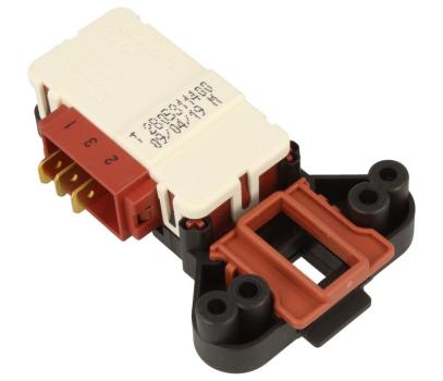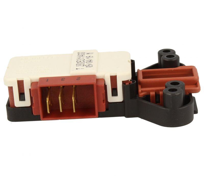 Bloqueapuertas de seguridad de puerta original para lavadoras y secadoras Beko. Interruptor de puerta de 3 pines con conector AMP Faston de 6,3 mm. Dimensiones aproximadas: longitud 76 mm, ancho 50 mm y altura 20 mm. Diseñado para asegurar el cierre correcto de la puerta y permitir el funcionamiento del aparato únicamente cuando la puerta está bien bloqueada.