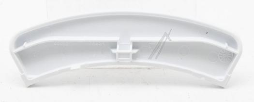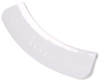 Maneta de puerta de recambio para lavadoras Beko, diseñada como tirador alargado y curvo para la apertura de la escotilla. Presenta una base plana con los extremos ligeramente redondeados y superficie lisa de color blanco uniforme, adecuada para integrarse en el diseño frontal de la lavadora. Pieza específica para sustituir la maneta original dañada o rota de la puerta.