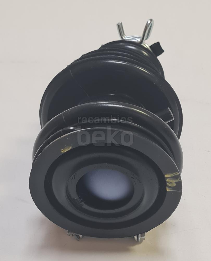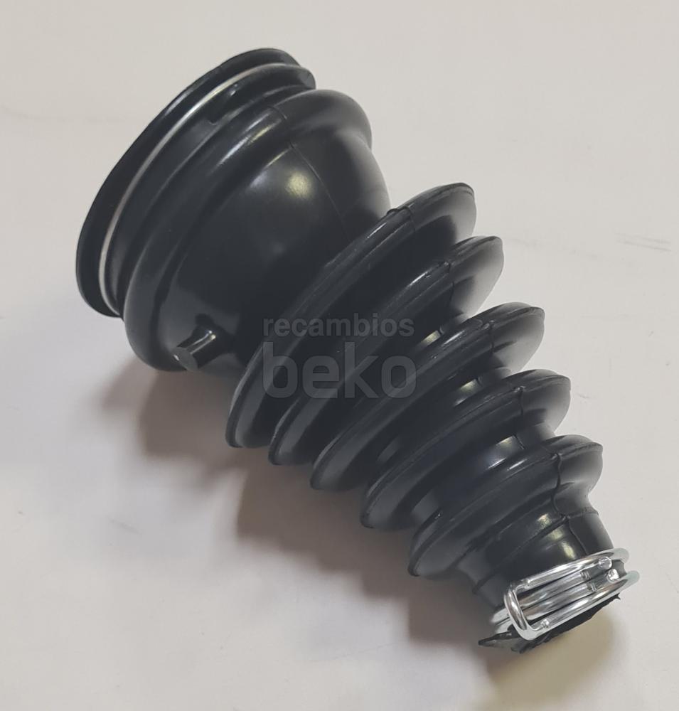 Manguito de conexión Beko para lavadoras y secadoras, diseñado para unir la bomba con la cuba. Tubo de conexión flexible con longitud aproximada de 16 cm, extremos abiertos para facilitar el montaje. Diámetro exterior de la conexión principal: 3,8 cm; diámetro interior: 3,4 cm.