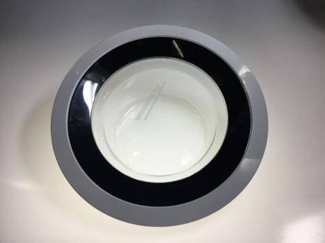 Puerta completa para lavadora Beko. Corresponde a la escotilla del aparato e incluye estructura exterior con marco y ventana circular transparente en el centro.