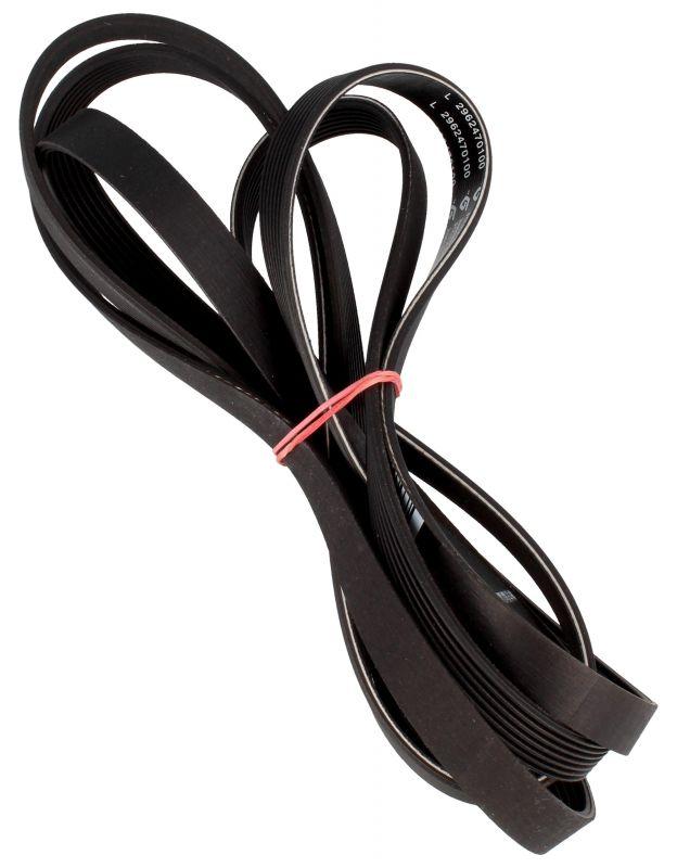 Correa de transmisión Poly-V elástica para lavadoras y secadoras de la marca Beko. Pieza en forma de aro, de color negro, diseñada para transmitir el movimiento del motor al tambor del aparato. Adecuada como recambio de la correa original en modelos compatibles de Beko.