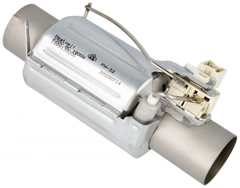 Resistencia tubular para lavavajillas Beko diseñada como calentador de agua de 1800W a 230V. Presenta forma alargada con cuerpo cilíndrico metálico uniforme de color gris plateado y conexiones eléctricas agrupadas en un extremo para su montaje en el aparato. Tiene un diámetro exterior de 32 mm y unas dimensiones aproximadas de 145 mm de longitud, 65 mm de ancho y 60 mm de altura. Incluye termostato integrado.
