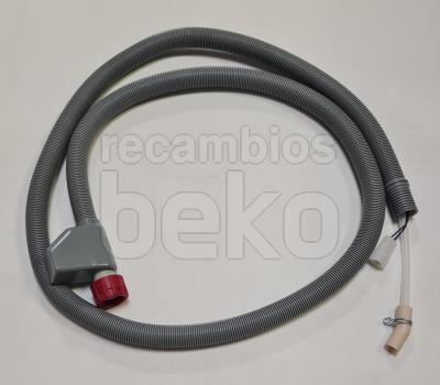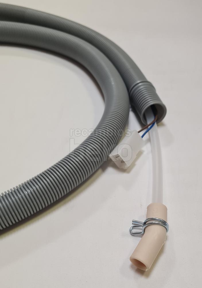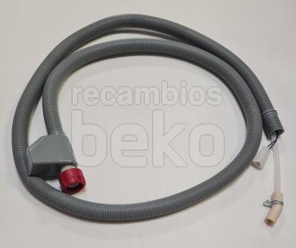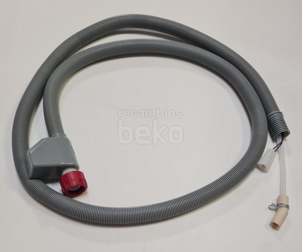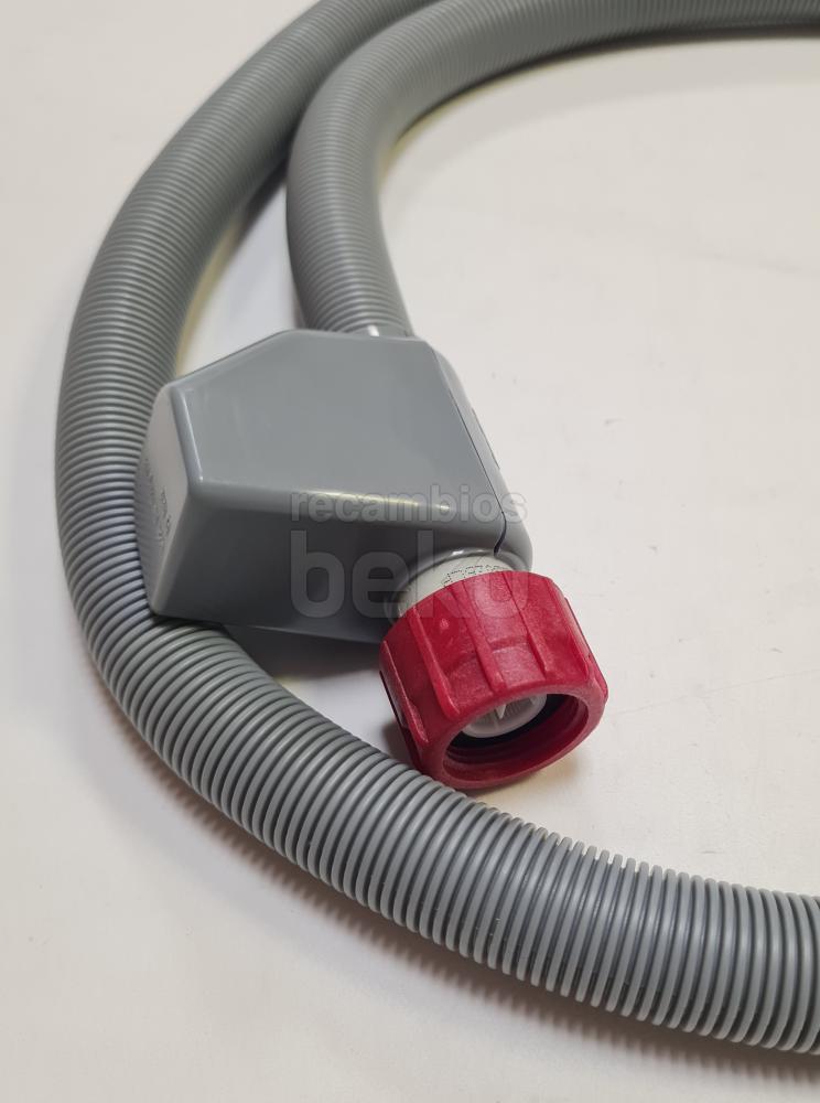 Tubo de entrada de agua con sistema de seguridad Aquastop eléctrico, diseñado para lavavajillas y lavadoras. Dispone de una longitud aproximada de 1,8 m. La conexión 2 tiene un diámetro exterior de 1,475 cm y un diámetro interior de 1 cm. Incluye un empalme de tubo flexible recto de 19,05 mm (3/4"). Indicado para la admisión de agua con protección frente a fugas.