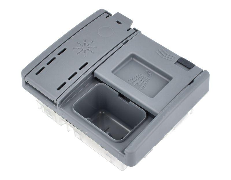 Jabonera completa original para lavavajillas de la marca Beko. Dispone de compartimentos internos separados para detergente y abrillantador, permitiendo una dosificación ordenada y precisa durante el ciclo de lavado.
