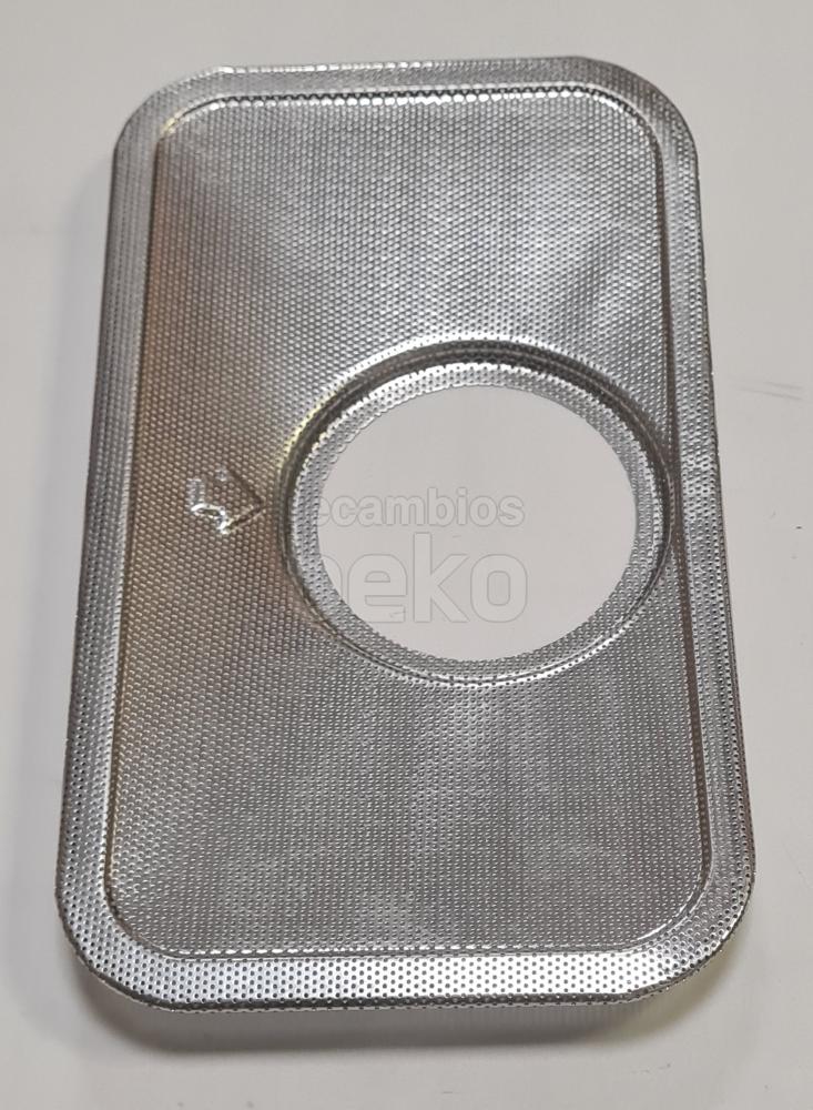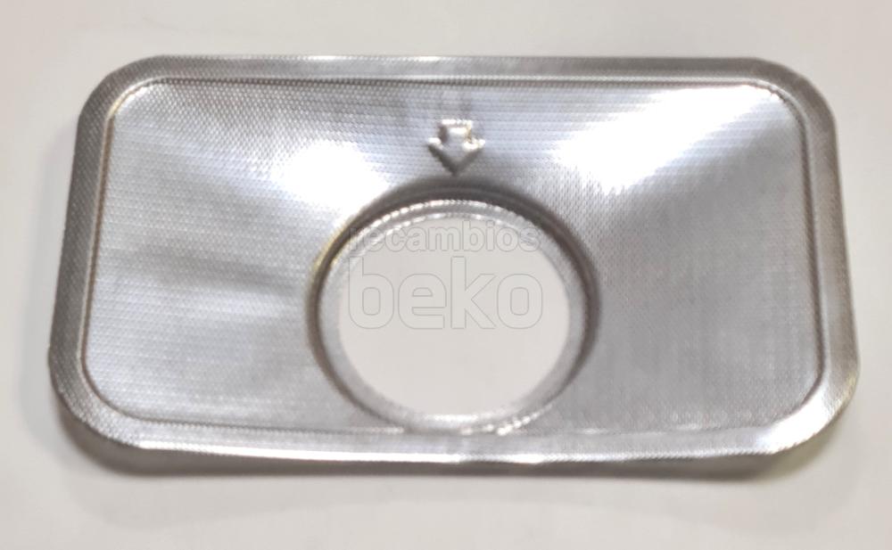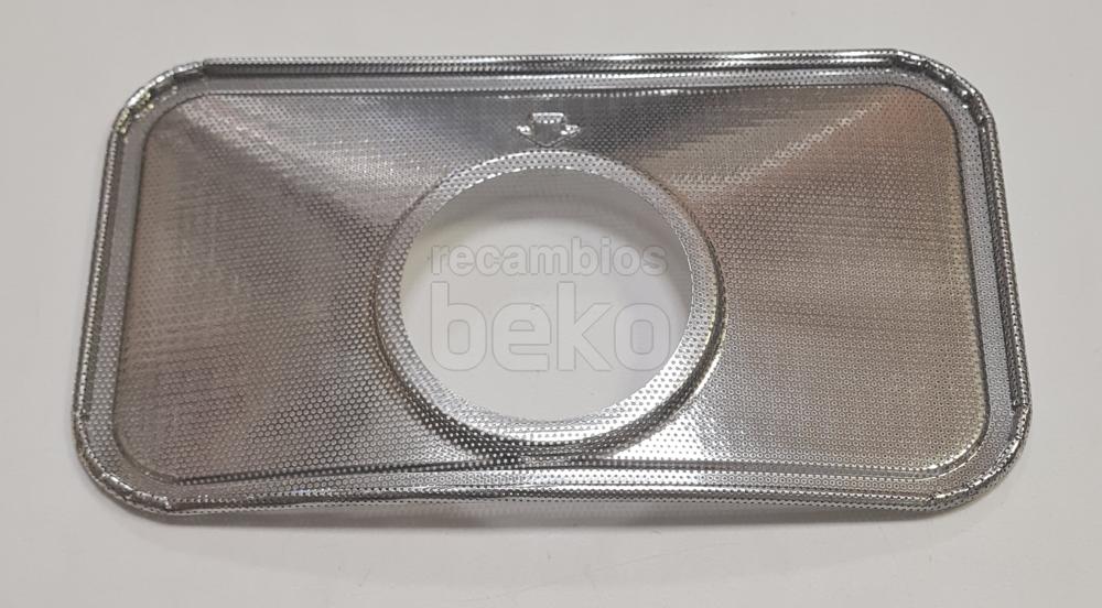 Filtro metálico original para lavavajillas Beko, diseñado para retener restos de comida y proteger el sistema de desagüe. De forma rectangular, presenta una rejilla fina uniforme que cubre toda la superficie filtrante y un marco liso alrededor que facilita su correcta colocación y extracción.