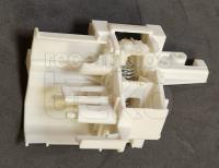 Cierre mecánico de puerta alternativo para lavavajillas BEKO. Pieza alargada y rectangular de plástico con muelles metálicos y elementos móviles visibles en la parte central, diseñada para asegurar el bloqueo correcto de la puerta durante el lavado. Se instala en el marco de la puerta del lavavajillas y actúa como sistema de enganche y seguridad del cierre.