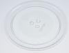 Plato giratorio de vidrio para microondas con diámetro de 24,5 cm. Superficie lisa y transparente, diseñado para apoyar y girar los recipientes durante el calentamiento.