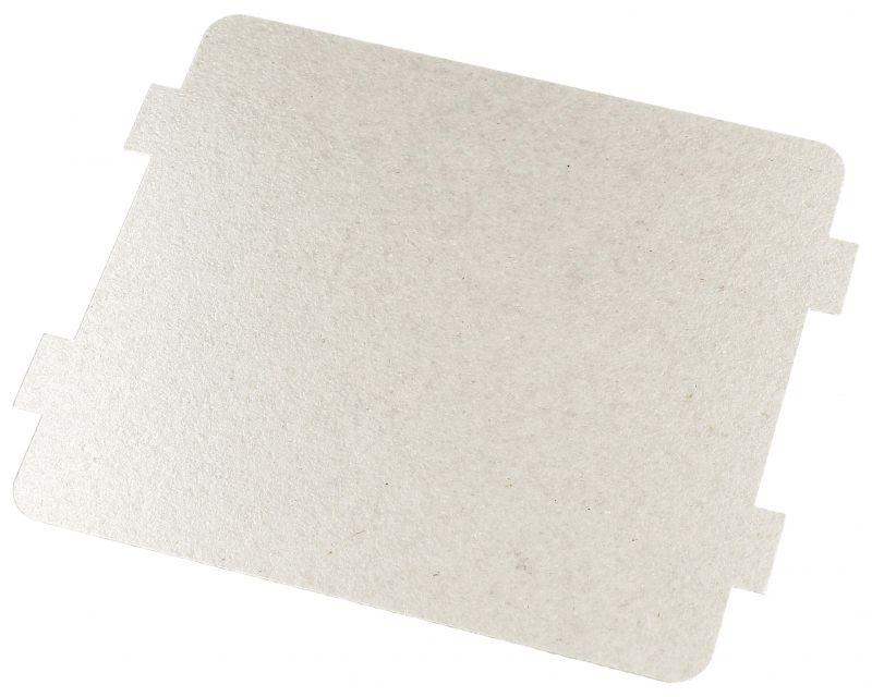 Placa de mica para microondas de 12 cm x 10 cm, diseñada para proteger la cavidad interior del aparato de salpicaduras y chispas procedentes del magnetrón. Pieza rectangular de tamaño pequeño, adecuada como recambio directo de la placa original dañada o quemada.