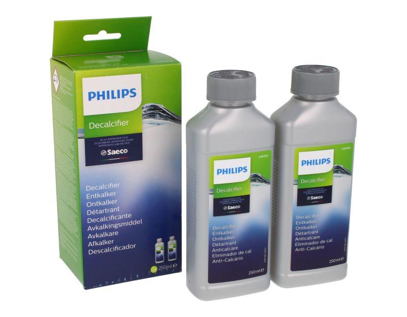Pack de 2 botellas de descalcificante Philips para pequeños electrodomésticos de la marca Beko, especialmente indicado para cafeteras y hervidores eléctricos. Cada botella contiene 250 ml de solución desincrustante líquida, formulada para eliminar depósitos de cal y residuos minerales del circuito interno. Adecuado para el mantenimiento periódico de cafeteras y hervidores, ayudando a conservar limpios los conductos internos y las superficies en contacto con el agua.