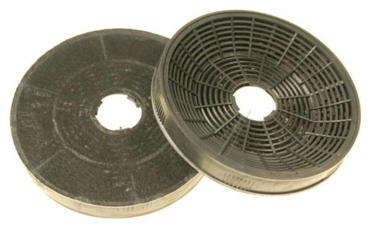 Filtro de carvão ativado AF100 para exaustores. Inclui 2 peças circulares de aproximadamente 16 cm de diâmetro e 2,3 cm de espessura, projetadas para a filtragem de fumos e odores em sistemas de extração domésticos.