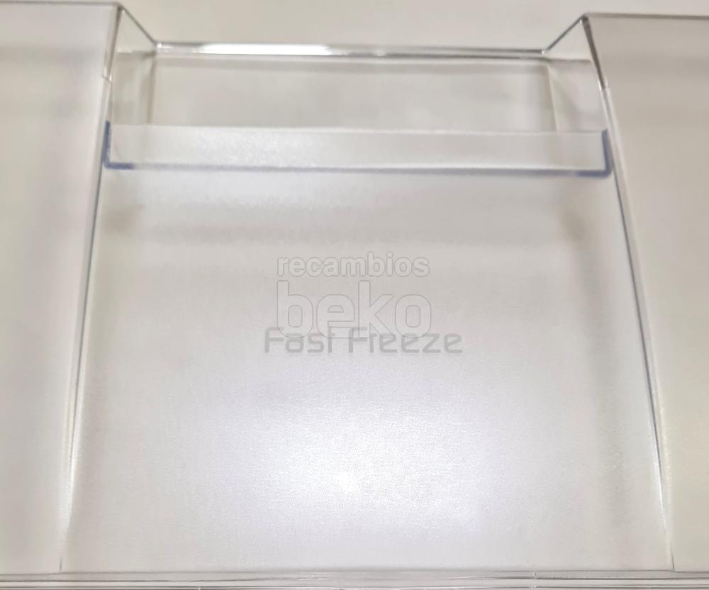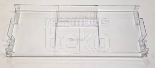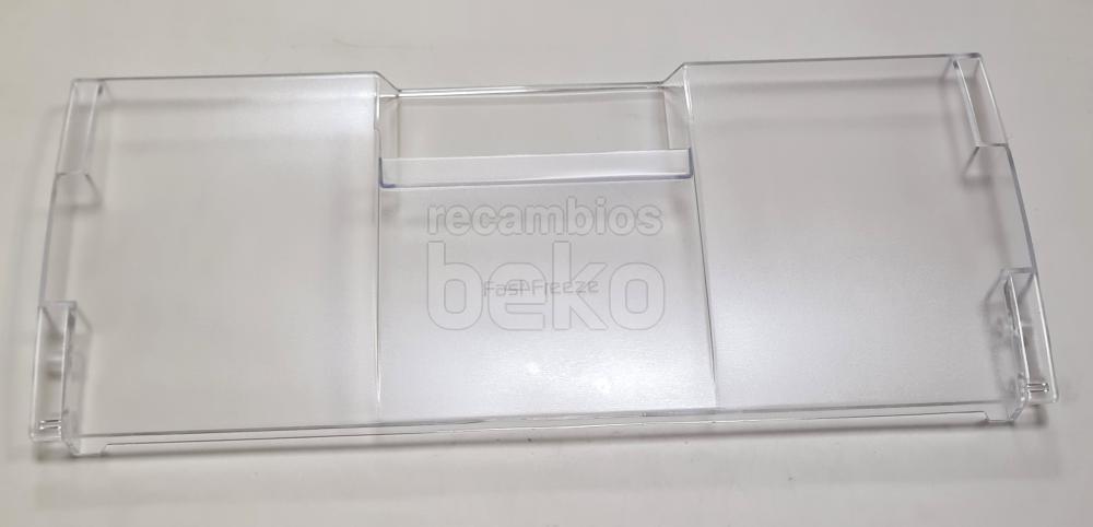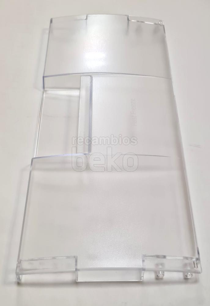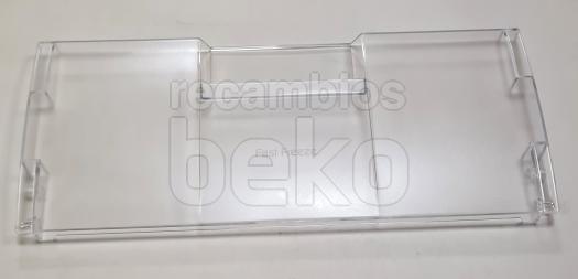 Tampa frontal original para gaveta de congelador Beko, concebida especificamente para o compartimento Fast Freeze. Esta peça funciona como frente da gaveta, permitindo abrir e fechar comodamente o compartimento de congelação rápida e protegendo os alimentos armazenados. É instalada na parte frontal da gaveta correspondente, encaixando nas guias ou fixações da própria gaveta do congelador. Adequada para frigoríficos e congeladores Beko que incorporam uma gaveta Fast Freeze com tampa frontal amovível.