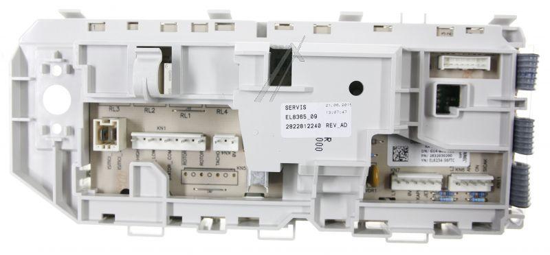 Módulo eletrônico principal original para algumas máquinas de lavar da marca Beko. Trata-se de uma placa eletrônica retangular de cor verde com as trilhas e componentes eletrônicos visíveis, montada sobre uma base de plástico branco que atua como suporte. Nas bordas incorpora vários conectores brancos para a ligação da cablagem do aparelho. Esta peça controla as funções principais da máquina, integrando os circuitos necessários para a gestão eletrónica do eletrodoméstico.